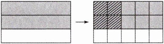 B 解析:由题图可知,先把长方形平均分成3份,涂其中的2份,就用分数$\frac{2}{3}$表示。再把涂色部分平均分成5份,涂其中的2份就用$\frac{2}{5}$表示,用算式表示为$\frac{2}{3}×\frac{2}{5}$。