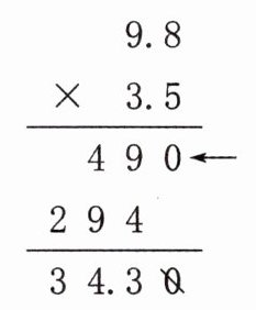 4. (邯郸)苹果每千克售价9.8元,买3.5千克苹果需要多少元?竖式中箭头所指的数表示购买苹果(