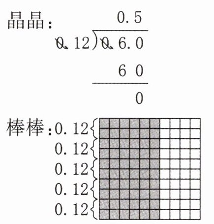 )是完全正确的。乐乐:0.6元= 60分,0.12元= 12分,60÷12= 5