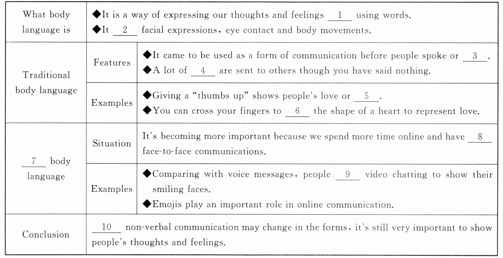 Humans live in a society. Not only verbal(言语的) communication, we also use our bodies to help us better express our thoughts and feelings. This non-verbal communication is known as body language.