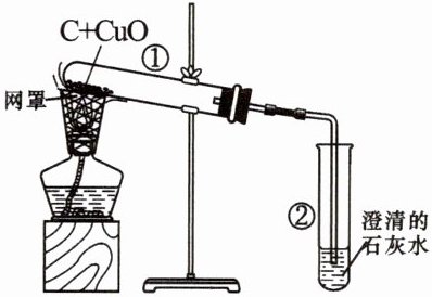 。反应的化学方程式:${C + 2CuO\xlongequal{\text{高温}}2Cu + CO_{2}\uparrow}$