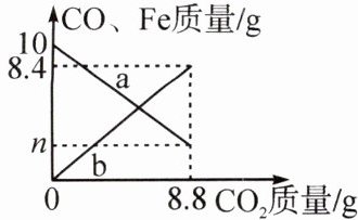 6. (2024·乐山)铁有多种氧化物,为探究其中一种氧化物FeₓOᵧ的组成,某同学将m g FeₓOᵧ和10 g CO置于密闭容器中在高温下发生反应。反应开始至某时刻,测得容器中部分物质的质量变化关系如图所示。下列说法正确的是(