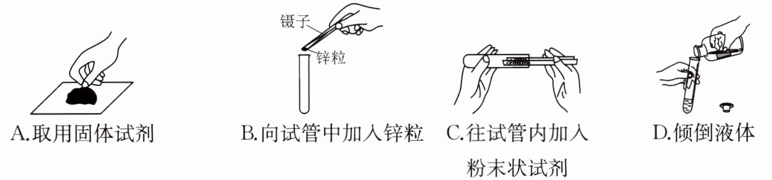 ①用试管夹夹持试管时,试管夹从试管底部往上套,夹在试管的中上部;②给盛有液体体积超过1/3容积的试管加热;③把鼻孔靠近容器口去闻气体的气味;④将试管平放,用纸槽往试管里送入固体粉末,然后竖立试管;⑤取用细口瓶中的液体时,取下瓶塞倒放在桌面上,倾倒液体时,瓶上的标签对着地面;⑥将烧瓶放在桌上,用力塞紧塞子;⑦用坩埚钳夹取加热后的蒸发皿;⑧将滴管垂直伸进试管内滴加液体;⑨检查装置的气密性时,先把导管的一端浸入水中,再用手捂住容器的外壁或用酒精灯微热。