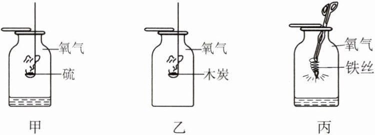(填试剂名称);③ 请写出丙中铁丝在氧气中燃烧的文字表达式: