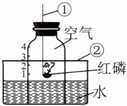 1. 如图所示,用此装置测定空气中氧气的含量。在①中加入红磷,红磷与空气中的氧气发生化学反应生成五氧化二磷固体。请按要求填空。