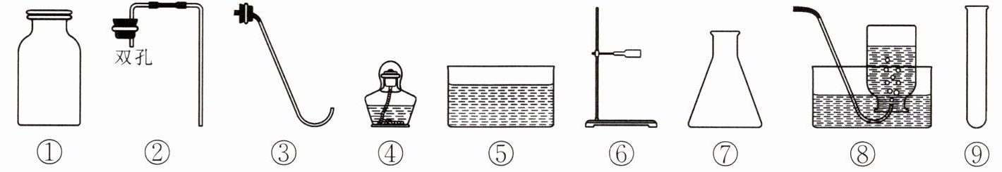 (2)③④⑥⑨ 高锰酸钾$\xrightarrow{\text{加热}}$锰酸钾+二氧化锰+氧气 氧气不易溶于水且不与水反应 防止高温熔融物溅落使集气瓶底炸裂