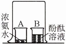 8.如图所示,烧杯A中盛有10mL浓氨水,烧杯B中盛有20mL蒸馏水,并滴入2~3滴酚酞溶液,得到无色溶液。几分钟后,可以观察到