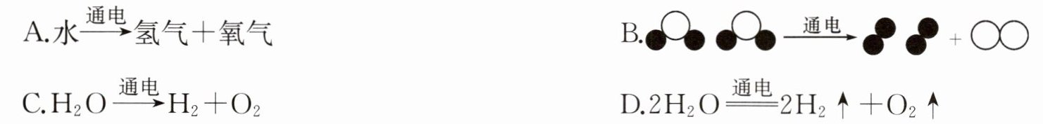 1. 一种化学反应有多种表达方式(以电解水为例),下列属于用化学方程式表达的是(