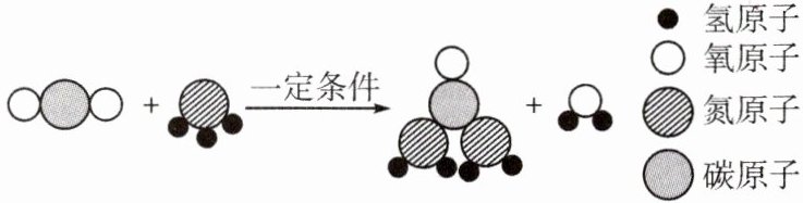9. (2024·长春)1828年维勒通过加热氰酸铵得到了尿素[化学式为$CO(NH_2)_2]。$尿素是第一种在生物体外合成的有机物,目前工艺有很大改进。某合成尿素的反应微观示意图如下。