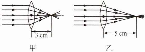 6.(硚口联考)如图所示,甲、乙两个凸透镜的焦距分别是3cm和5cm,下列说法不正确的是(