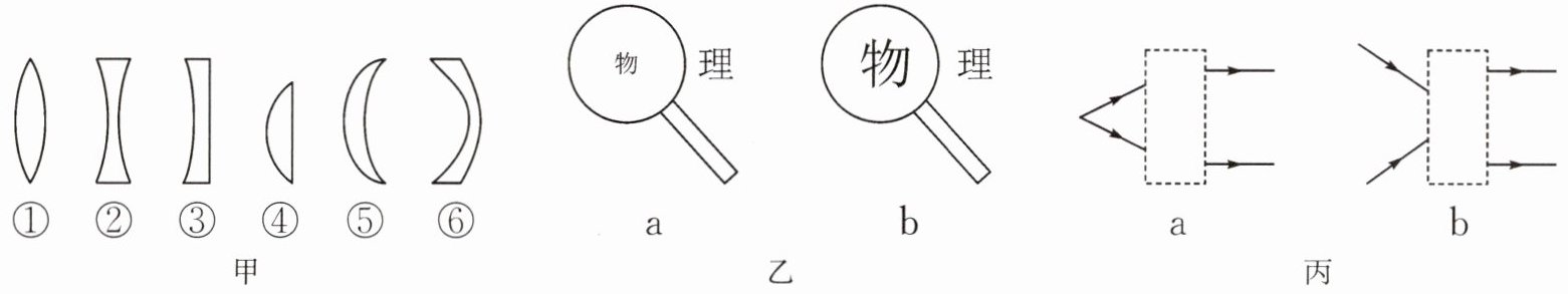 (2)将透镜靠近字,透过透镜看字:如乙图中