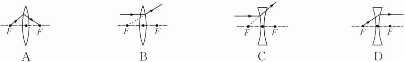 4.(利川联考)如图所示,F是透镜的焦点,其中正确的光路图是(
