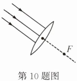 10.(教材改编)我国西汉时期的《淮南万毕术》记载:“削冰令圆,举以向日,以艾承其影,则火生。”这是利用冰透镜对日聚焦取火的最早记载。其中“削冰令圆”是把冰削成____透镜;“以艾承其影”是把“艾”(易燃物)放在透镜的____上。如图所示,假设F为冰透镜的焦点,请你在图中完成光路。