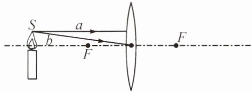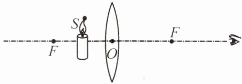 3. (阜新中考)在探究凸透镜成像规律的实验中,小新透过凸透镜看到烛焰S的像点$S'$,画出光路图确定像点$S'$的位置,图中O为光心,F为焦点。(保留必要的作图痕迹)