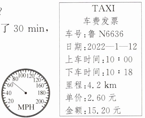 (2)出租车在行驶过程中,以如图中码表所示的速度行驶了30min,求这段时间通过的路程。