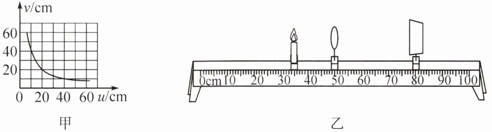 (2)通过探究,记录并绘制了像距v与物距u之间的关系图像如图甲所示,则该凸透镜的焦距是
