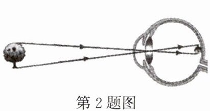 2. (百色中考)如图所示是我们看远处物体的示意图,来自远处物体的光经过眼睛晶状体后在视网膜上形成(