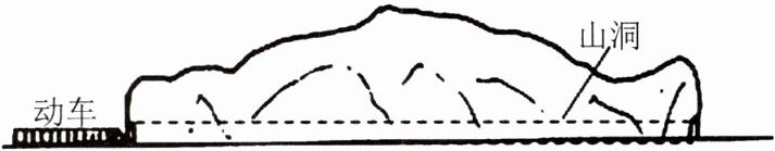 4.(芗城期中)国庆节小漳和爸爸坐动车一起去探望远房亲戚,他们所坐的动车车长为360m,当动车通过一山洞时速度为72km/h,如图所示。小漳测得动车全部在此山洞内运行的时间为108s,假设动车一直匀速行驶。