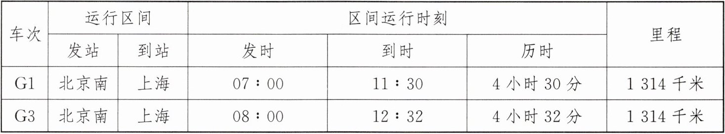 (2)如表给出了G1、G3次列车没有使用“进站不停车”技术前的部分运行时刻表(途中经停8个站),请根据表中信息完成以下问题: