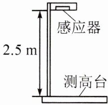 11. (2023·安徽)如图所示为一种身高测量仪,其顶部的感应器竖直向下发射超声波信号,经下方物体反射后返回,被感应器接收。某同学站上测高台,感应器记录信号从发射到接收所经历的时间为5×10^{-3}s。已知感应器距测高台的高度为2.5m,空气中的声速取340m/s,则该同学的身高为(