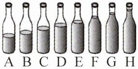 7. (苏州模拟)如图所示为小明做的“水瓶琴”,在8个相同的水瓶中灌入质量不同的水,水面的高度不等。若用相同的力敲击它们,就可以发出不同的音调,此时的声源是