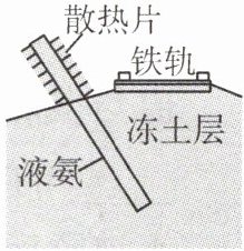 6.(2024·潍坊)为保证青藏铁路多年冻土区路基的稳定性,铁路两侧安装了许多封闭的中空热棒。如图所示,热棒下端插在冻土中,内部填充低沸点的液态氨,利用氨的物态变化给冻土降温,把冻土中的热量“搬运到”热棒上端,通过散热片向空中放热,从而使冻土保持稳定。下列说法正确的是(