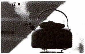 8. 如图所示,小明用水壶烧水,水沸腾后,仔细观察发现a、b两个位置,有一个位置出现大量“白气”。下列关于“白气”的分析中,正确的是(