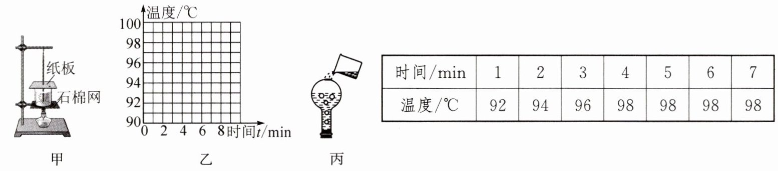 (5)水沸腾后,将水倒入烧瓶,发现水停止沸腾,如图丙所示。用橡皮塞塞住烧瓶口并将其倒置,向烧瓶底部浇冷水,发现水重新沸腾了。这是因为浇冷水后瓶内水蒸气______(填物态变化名称),瓶内气压减小,水的沸点______(选填“升高”“降低”或“不变”)。