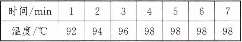 (2)从水温达到90℃开始每隔1min记录一次水温,直到水沸腾一段时间后停止加热。数据记录如表所示;
