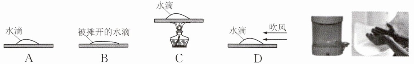(2)保持两滴水的大小、温度和表面积相同,对其中一滴水吹风 AD
