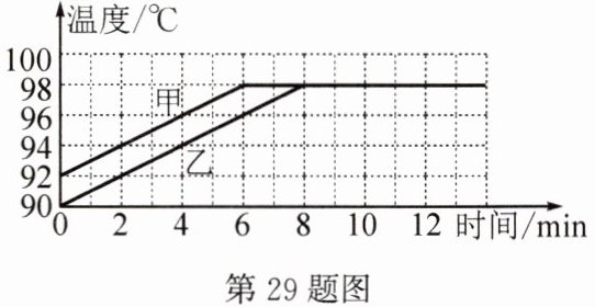 29. 在探究“水沸腾时温度变化的特点”实验中,两组同学根据实验数据绘制的温度随时间变化的曲线如图所示,由图像可知,水沸腾时的特点是