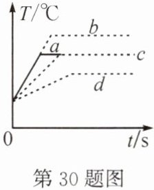 30. 用同一热源给烧杯内的水加热,其温度与时间的关系如图中图线 $a$ 所示,若其他条件不变,下列说法正确的是(