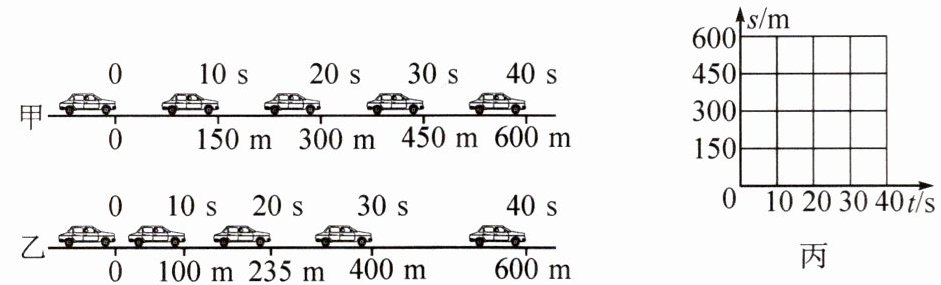 (3)物体的运动情况常常可以用图像来描述,请在丙图中画出甲车的路程—时间图像。