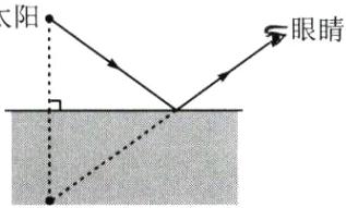 13. 某同学站在湖边看日出,同时也看到了水中的太阳。请在图中画出他看到水中太阳的光路图。