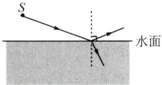 18. 一束激光由S点从空气射向水面,请在图中画出它在水和空气中的传播径迹。