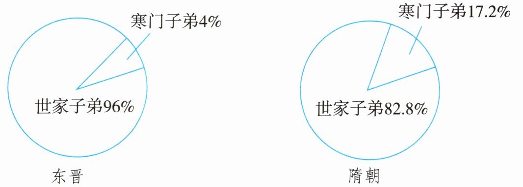 3. 观察下图中东晋官员与隋朝官员出身占比的变化,推断出导致变化的主要原因是(