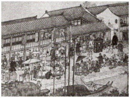 8. 右图是一幅描绘乾隆时期市井风情的画作。下列历史叙述与图中情景一致的是(
