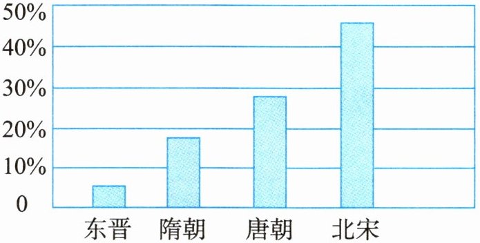4. 下图为东晋至北宋时期平民子弟在政府官员群体中所占比例的柱状图。促成隋唐之后这一比例不断增长的制度是(