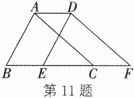 11. 如图,将三角形 $ DEF $ 沿 $ FE $ 方向平移 $ 3 \mathrm { cm } $ 得到三角形 $ ABC $. 若三角形 $ DEF $ 的周长为 $ 24 \mathrm { cm } $,则四边形 $ ABFD $ 的周长为____