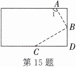 15. 新情境 数学与生活 如图,林林按虚线剪去长方形纸片的相邻两个角,并使 $ \angle 1 = 120 ^ { \circ } $,由于不小心,把点 $ B $ 处的角撕坏了,测得 $ \angle BCD = 30 ^ { \circ } $,则被撕坏了的 $ \angle ABC $ 的度数为__