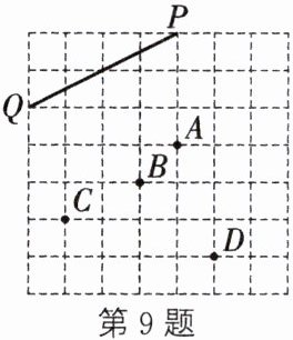 9. 数形结合思想 (苏州中考)如图,在正方形网格内,线段 $ PQ $ 的两个端点都在格点上,网格内另有 $ A $,$ B $,$ C $,$ D $ 四个格点. 下列结论正确的是 (