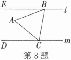8. (泰安中考)如图,直线$l// m$,等边三角形ABC的两个顶点B,C分别落在直线l,m上.若$∠ABE= 21^{\circ }$,则$∠ACD$的度数为 (