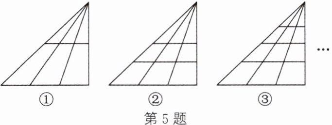 5. C 解析:题图①中,三角形的个数是 $6 + 6 = 6×2$,题图②中,三角形的个数是 $6 + 6 + 6 = 6×3$,题图③中,三角形的个数是 $6 + 6 + 6 + 6 = 6×4$……图ⓝ中,三角形的个数是 $6(n + 1)$。