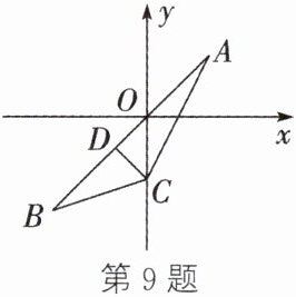 9. 如图,直线AB经过原点O,点C在y轴上,D为线段AB上一动点.若点A,B,C的坐标分别为(2,m),(-3,n),(0,-2),AB= 10,则CD长的最小值为(