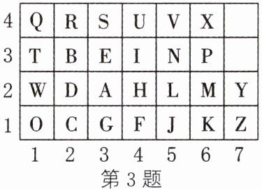 3. 新情境 数学与游戏 两个小伙伴拿着如图所示的密码表玩听声音猜动物的游戏.若听到“咚咚—咚咚,咚—咚,咚咚咚咚—咚”表示的动物是狗,则听到“咚咚—咚,咚咚咚—咚咚,咚—咚咚咚咚”时,表示的动物是(