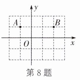 8. 如图,在方格纸中,每个小正方形的边长均为1,点$O$,$A$,$B$在小正方形的顶点(即格点)上.在第四象限内的格点上找点$C$,使三角形$ABC$的面积为3,这样的点$C$共有(