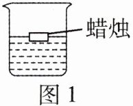 (1)如图1所示,取一支蜡烛,用小刀切下一小块,把它放入水中,蜡烛浮在水面上。