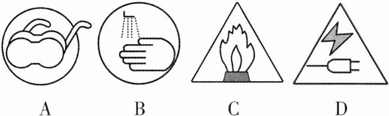 5 [2025 广州一中期中]在课本探究“观察与描述蜡烛及其燃烧”实验中与该实验无关的标志是 (