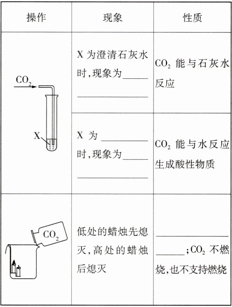 |$CO_2$能与水反应生成酸性物质|||低处的蜡烛先熄灭,高处的蜡烛后熄灭|