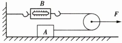 6 如图所示,在水平拉力F的作用下,重100N的物体A沿水平桌面做匀速直线运动。轻质弹簧测力计B的示数为10N,物体A移动的速度为0.2m/s,不计滑轮重、绳重及滑轮与绳间的摩擦,则拉力F的大小为